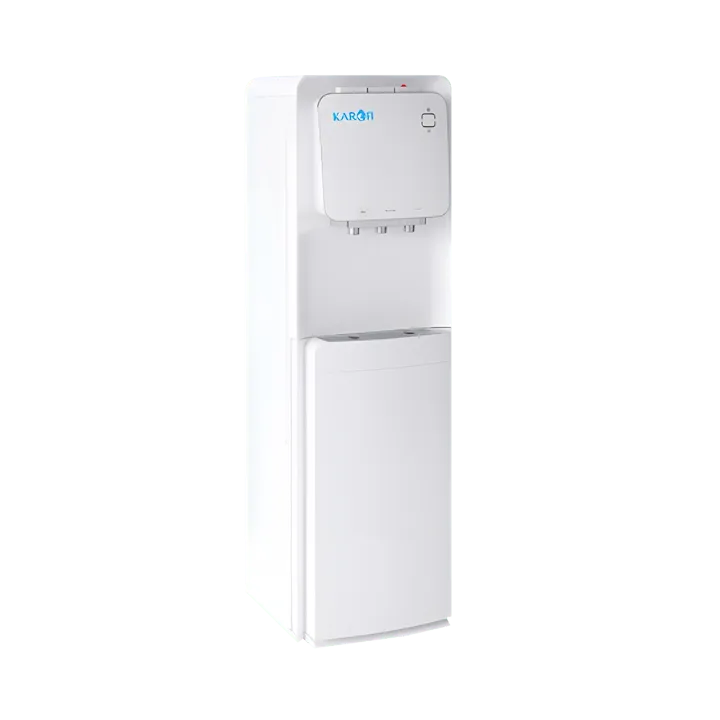 Điểm nhấn của Cây nước nóng lạnh Karofi HC19 chính là thiết kế bình âm đặt ngay bên dưới phía trong thân máy, giúp người dùng kể cả chị em phụ nữ dễ dàng lắp và thay bình mà không mất nhiều công bê vác. Ngoài ra, việc lắp đặt bên trong thân máy hạn chế trường hợp va chạm gây đổ bình, đồng thời tiết kiệm không gian, có thể lắp máy ở những nơi hạn chế về chiều cao.