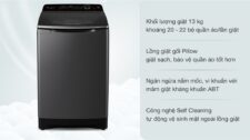 - Khối lượng giặt tối đa 13 kg, máy phù hợp sử dụng cho các gia đình đông thành viên với nhu cầu giặt giũ lớn (trên 7 thành viên), hoặc các gia đình có ít thành viên hơn nhưng nhu cầu giặt giũ cao, có thói quen để dồn quần áo giặt 1 lần trong tuần nhằm tiết kiệm điện nước.- 12 chương trình giặt giũ được tích hợp sẵn phù hợp với nhiều chất liệu quần áo khác nhau: Sợi cotton, đồ thể thao, chăn mền, đồ trẻ em, vải lụa,... (xem thêm tại bảng thông số kỹ thuật). Chương trình giặt đồ trẻ em sẽ có chu trình xả lâu và kỹ hơn nhầm loại bỏ hoàn toàn xà phòng khỏi quần áo, an toàn cho làn da nhạy cảm của trẻ nhỏ.
