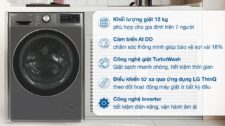 *Hình ảnh chỉ mang tính chất minh họaNhìn chung, máy giặt LG AI DD Inverter 12 kg FV1412S3B là thiết bị giặt giũ hiện đại hỗ trợ các công nghệ tiên tiến giúp loại bỏ vết bẩn, diệt khuẩn, bảo vệ chất liệu vải tối ưu, sử dụng tiết kiệm điện, nước, điều khiển từ xa tiện lợi,... lựa chọn lý tưởng cho gia đình trên 7 người với khối lượng giặt 12 kg.