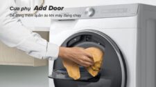Samsung nghiên cứu ra một giải pháp cực kỳ hữu ích cho các bà nội trợ đãng trí, hay quên. Đó là cửa phụ Add Wash, cửa này cho phép bạn cho thêm đồ giặt ngay cả khi máy đang chạy.