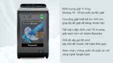 Máy giặt Panasonic 11.5 kg NA-FD11AR1BV sở hữu công nghệ TD Inverter cải tiến của hãng, có thể tạo ra luồng xoáy nước mạnh mẽ Water Bazooka nhanh chóng loại bỏ các vết bẩn bám trên quần áo, cùng với khả năng tiết kiệm điện hiệu quả đến 30% và vận hành êm ái.