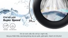 Một trong những chức năng gây ấn tượng với người dùng nhất là giặt sạch, nhanh Super Speed. Với tính năng này, máy giặt giúp giảm thiểu thời gian xả và vắt đảm bảo quần áo sạch nhanh chỉ trong 59 phút, nhờ vòi xịt nước siêu tốc có áp lực nước mạnh mẽ, tăng sức mạnh thẩm thấu của bong bóng siêu mịn vào áo quần.