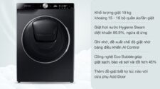 | AI Wash tối ưu lượng nước giặt xả, lượng nước và thời gian giặt VRT Plus ™ giảm rung ồn đến 30% QuickDrive giặt xả hiệu quả chỉ trong 39 phút AI Dispenser tự động cân chỉnh lượng nước giặt, nước xả Kết nối với điện thoại thông qua ứng dụng SmartThings Bảng điều khiển AI control tự động ghi nhớ chế độ giặt Công nghệ giặt bong bóng Eco Bubble Digital Inverter Giặt hơi nước Hygiene Steam |