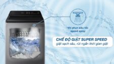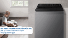 - Kiểu dáng: máy giặt cửa trên - lồng đứng dạng hình khối chữ nhật đứng thiết kế tối giản, hiện đại, tông màu đen - xám trang nhã, tô điểm cho không gian sống của bạn sang trọng, đẳng cấp hơn.- Bảng điều khiển song ngữ Anh - Việt, có màn hình hiển thị thân thiện, thiết kế nghiêng ở mặt sau của máy giặt, tránh được tình trạng nước tràn vào bề mặt màn hình điều khiển và cho người dùng thao tác thoải mái, dễ dàng hơn.- Lồng giặt bằng thép không rỉ hạn chế rỉ sét, thiết kế các lỗ thoát nước nhỏ giảm khả năng làm tưa sờn mặt vải, bảo vệ quần áo, đảm bảo hiệu quả giặt giũ tối ưu.- Nắp máy chất liệu kính chịu lực dày bền, chịu lực tốt, được làm trong suốt cho bạn dễ quan sát bên trong máy ngay cả khi không mở nắp máy giặt Samsung ra.