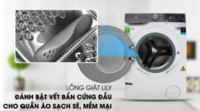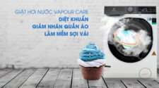 Diệt khuẩn, giúp quần áo luôn mềm mại với công nghệ giặt hơi nước Vapour CareVới gia đình có trẻ nhỏ hoặc người thân có làn da dễ bị dị ứng thì với công nghệ giặt hơi nước Vapour Care bạn sẽ hoàn toàn yên tâm. Nhờ công nghệ này, quần áo sẽ được giặt bằng hơi nước ở nhiệt độ cao, góp phần đẩy lùi vi khuẩn và tác nhân gây dị ứng có trên quần áo.Bên cạnh đó, hơi nước còn giúp cho sợi vải được mềm mại hơn, nâng cao hiệu quả chống nhăn cho quần áo.