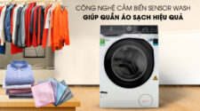 Công nghệ cảm biến Sensor Wash giúp giặt sạch hơn và hạn chế cặn bột giặtCông nghệ này sẽ giúp giảm tối đa cặn bột giặt còn dính lại trong quần áo của bạn tới 83% so với các dòng máy thông thường. Nhờ vào sự kết hợp của cảm biến Turbidity với khả năng đánh giá mức độ bẩn của quần áo, để đưa ra thời gian giặt cần thiết để làm sạch quần áo và cảm biến Conductivity có thể đánh giá đưa ra số lần xả quần hợp lý.