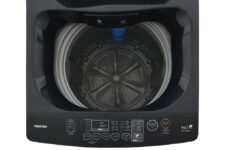 - Toshiba AW-M1100PV(MK) là dòng máy giặt lồng đứng có kết cấu chắc chắn, gam màu đen sang trọng, trang trí hài hòa với mọi phong cách thiết kế nội thất.- Bảng điều khiển chú thích song ngữ Anh - Việt, đi kèm màn hình hiển thị rõ nét cho bạn quan sát và tùy chỉnh các chức năng dễ dàng, chuẩn xác.- Vỏ máy chất liệu kim loại sơn tĩnh điện bền bỉ, lớp sơn tĩnh điện hạn chế trầy xước, giữ bề mặt bóng sáng, duy trì độ mới dài lâu.- Nắp máy giặt Toshiba bằng kính chịu lực chịu tải trọng lên đến 100 kg, thiết kế vân lụa ngăn nước bám vào bên trong nắp và hạn chế bám vân tay ở mặt ngoài, giữ nắp sạch sẽ, bền tốt.- Lồng giặt bằng thép không gỉ cứng cáp, hạn chế rỉ sét, mài mòn trong thời gian sử dụng. Bên trong thiết kế nhiều lỗ phun nước phân bố hợp lý giúp đảm bảo quá trình giặt giũ hiệu quả.