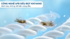 - Công nghệ UFB siêu bọt khí Nano hoạt động bằng cách tạo ra các bọt khí với kích thước siêu nhỏ hút các phân tử chất giặt tẩy, phân bổ đến mọi nơi trong nước giúp bột giặt thẩm thấu vào từng sợi vải, đánh bay những vết bẩn cứng đầu, đồng thời hỗ trợ nước xả vải phát huy công dụng tối đa, quần áo thơm tho lâu hơn.