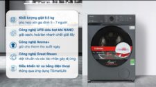 - Mẫu máy giặt Toshiba này có khối lượng giặt tối đa 9.5 kg là lựa chọn phù hợp cho gia đình có từ 5 - 7 người.- Trang bị 15 chương trình giặt được cài đặt sẵn: đồ cotton, giặt nhanh 15 phút, giặt 45 phút, giặt hơi nước, giặt tiết kiệm, bảo vệ màu, vệ sinh lồng giặt, chu trình tải về,... Trong đó chương trình giặt nhanh 15 phút giúp đẩy nhanh tốc độ giặt để bạn có được bộ đồ sạch tinh tươm để diện, không bị trễ giờ dự tiệc, đi học hay đi làm.