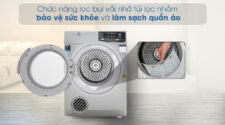 Tình hình thời tiết bất thường đặc biệt là vào mùa đông tại Việt Nam, mưa nhiều khiến quần áo bị ẩm ướt và có mùi hôi không chỉ gây khó chịu cho chính bạn mà còn ảnh hưởng tới những người xung quanh. Sự ra đời của máy sấy Electrolux chính là một giải pháp hữu hiệu để giải quyết vấn đề này. Nó cung cấp cho quần áo của bạn sự chăm sóc xứng đáng với việc làm khô nhẹ nhàng cho các nếp nhăn ít hơn tới 32%, bạn sẽ hạn chế được việc ủi hơn và bảo vệ quần áo luôn trông đẹp nhất.Máy sấy cửa trước hiện đại và sang trọngMáy sấy Electrolux 8kg lồng ngang EDV805JQSA đến từ thương hiệu rất nổi tiếng về máy sấy - Electrolux. Chiếc máy sấy có thiết kế cửa trước hiện đại, tiện lợi, được phủ bởi ánh bạc càng làm nổi bật vẻ tinh tế, thanh lịch, không chỉ giúp ích trong việc chăm sóc quần áo cho gia đình bạn mà còn mang đến vẻ đẹp sang trọng cho không gian nội thất.