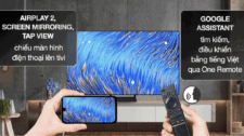 - Sử dụng giọng nói để điều khiển tivi Samsung với trợ lý ảo Google Assistant (hỗ trợ tiếng Việt) hoặc Bixby (chưa hỗ trợ tiếng Việt).- Tính năng AirPlay 2 (iPhone), Screen Mirroring (Android), Tap View cho phép bạn chia sẻ nhanh màn hình điện thoại lên tivi để xem các video, album hình với màn hình cỡ lớn đã mắt hơn.- Tính năng Multi View hiển thị đa màn hình cho người dùng được xem nhiều nội dung cùng lúc trên màn hình tivi, không phải bỏ lỡ bất kỳ thông tin quan trọng nào trên điện thoại trong khi xem tivi.- One Remote thiết kế nhỏ gọn, cầm nắm và thao tác điều khiển tivi từ xa thuận tiện. Có micro tích hợp để bạn điều khiển bằng giọng nói rõ ràng. Remote còn hỗ trợ sạc bằng năng lượng mặt trời, bảo vệ môi trường, tiết kiệm chi phí.- Kết nối điện thoại với tivi và gọi video online cùng ứng dụng Google Duo (cần mua thêm camera), những buổi trò chuyện sẽ cho cảm giác chân thực như khi gặp mặt trực tiếp.