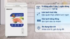 - Kiểu dáng: thiết kế dạng tủ nằm có 1 ngăn đông với kiểu dáng đơn giản, tinh gọn, sang trọng cùng tông màu trắng trang nhã, hài hòa với mọi không gian sử dụng.- Thân tủ đông làm bằng tôn sơn tĩnh điện, khung mặt tủ làm từ nhựa ABS, trong khi cửa tủ cũng có vỏ ngoài bằng tôn sơn tĩnh điện, viền cánh cửa được làm bằng nhựa AB, lòng cánh cửa bằng nhựa HIPS đều là những vật liệu có độ bền cao, hạn chế mài mòn, chịu lực tốt, dễ dàng làm sạch.- Tủ đông Hòa Phát có dung tích sử dụng 107 lít, lựa chọn phù hợp để lưu trữ thực phẩm đông lạnh trong gia đình, quán hải sản, tiệm tạp hóa có quy mô nhỏ.- Lòng tủ chất liệu nhôm sơn tĩnh điện có khả năng chịu nhiệt, giữ nhiệt tốt, duy trì nhiệt độ thiết bị trung bình trong khoảng ≤ -18°C, bề mặt láng mịn, hạn chế trầy xước, cho thiết bị mới lâu.