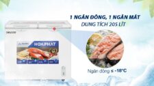 - Bên ngoài: Sản phẩm được thiết kế dạng tủ nằm, màu trắng, phù hợp với nhiều vị trí trong phòng bếp nhà bạn, thậm chí có thể đặt trước sảnh hoặc phòng khách đối với gia đình đang kinh doanh.- Bên cạnh đó, mẫu tủ đông Hòa Phát này còn được thiết kế 1 ngăn đông và 1 ngăn mát với 2 cánh cửa riêng biệt, giảm thiểu tình trạng thất thoát hơi lạnh ra ngoài mỗi khi người dùng lấy và cho thực phẩm vào bên trong tủ.- Tủ đông có phần khung làm bằng nhựa ABS chống va đập và chịu nhiệt độ cao, còn phần thân và lớp vỏ cửa tủ được làm bằng tôn sơn tĩnh điện chống trầy xước và có độ bền tối ưu.- Tủ đông Hòa Phát HPF BD6205 sở hữu dung tích 205 lít, trong đó dung tích ngăn mát 108 lít và ngăn đông 97 lít, có thể đáp ứng bảo quản thực phẩm cho các gia đình kinh doanh quán ăn, tạp hóa, bán thủy hải sản,… với quy mô nhỏ và vừa.- Bên trong: Lòng thân tủ phẳng và được làm từ nhôm sơn tĩnh điện màu trắng. Trong khi bên trong lòng cửa tủ làm bằng nhựa HIPS có khả năng kháng khuẩn, giảm thiểu xuất hiện nấm mốc gây hư hỏng cửa tủ. Hơn nữa, phần gioăng cao su được thiết kế dạng gài, người dùng có thể tháo dễ dàng mỗi khi vệ sinh.- Ngoài ra, tủ đông Hòa Phát 205 lít còn được hãng thiết kế thêm lớp cách nhiệt Polyurethane với độ dày 50 - 62 mm, có khả năng duy trì nhiệt độ ổn định bên trong tủ và góp phần tiết kiệm điện hiệu quả.- Ngăn mát có nhiệt độ từ 0 đến 10⁰C, còn ngăn đông có nhiệt độ ≤ -18⁰C và thậm chí có thể cấp đông sâu đến mức -30⁰C.