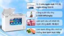 245 lít – Ngăn mát 117 lít – Ngăn đông 128 lítDung tích ngăn đông mềm: