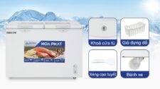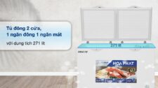 - Bên ngoài: Thân tủ đông Hòa Phát được làm bằng tôn sơn tĩnh điện, màu trắng, kèm với phần khung mặt tủ làm bằng nhựa ABS có độ bền cao. Ngoài ra, phần vỏ của cánh cửa tủ được làm bằng tôn sơn tĩnh điện, cũng có màu trắng sứ với phần viền cửa làm bằng nhựa ABS.- Mẫu tủ đông Hòa Phát 271 lít này được thiết kế dạng tủ nằm, 1 ngăn đông, 1 ngăn mát và 2 cửa, có thể lắp đặt tại bất kỳ vị trí nào trong gian bếp.- Dung tích 271 lít, tủ đông Hòa Phát HPF BD6271 có thể đáp ứng nhu cầu bảo quản thực phẩm của những hộ gia đình kinh doanh tạp hóa nhỏ, quán ăn hoặc cửa hàng thủy hải sản với quy mô nhỏ.- Bên trong: Lòng tủ được thiết kế dạng phẳng với chất liệu làm từ nhôm sơn tĩnh điện, màu trắng có độ bền tốt. Bên cạnh đó, chất liệu bên trong của cánh cửa tủ làm bằng nhựa HIPS có tính thẩm mỹ cao và có khả năng chống ăn mòn hóa chất tối ưu.- Chưa hết, lớp cách nhiệt Polyurethane có độ dày từ 50 đến 62 mm giúp tủ có khả năng giữ nhiệt tốt, tiết kiệm điện. Đồng thời, phần gioăng cánh tủ có kiểu thiết kế dạng gài, có thể tháo lắp dễ dàng vệ sinh.- Ngăn mát có dung tích 141 lít với nhiệt độ dao động từ 0 đến 10℃.- Ngăn đông có dung tích 130 lít với nhiệt độ trung bình ≤ - 18℃.