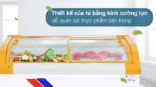 - Kiểu dáng thiết kế lạ mắt, màu sắc tươi sáng cùng dung tích tương đối lớn 350 lít thích hợp sử dụng trong các cửa hàng tiện lợi, tiệm tạp hóa cần trưng bày thực phẩm như các loại kem,...- Thiết kế tủ nằm, 2 cửa thuận tiện, dễ dàng lấy thực phẩm ra ngoài mà không cần mở toàn bộ cửa tủ, từ đó giảm lượng điện năng bị tiêu hao.- Tổng thể thân tủ được làm từ thép sơn tĩnh điện, gia tăng độ bền cho sản phẩm nhờ khả năng chống lại quá trình bào mòn vật liệu bên trong.- Cửa tủ được chế tác từ kính cường lực cứng cáp, hạn chế nứt vỡ khi va đập, đảm bảo độ an toàn cho người dùng.- Tủ đông Sanaky có khả năng giữ nhiệt tương đối tốt nhờ lòng tủ được làm từ hợp kim nhôm phủ lớp sơn tĩnh điện, giữ lạnh lâu, giảm tình trạng hư hỏng sản phẩm trong trường hợp mất điện đột ngột.