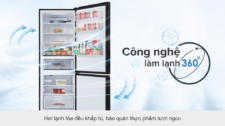 Công nghệ làm lạnh 360 độ làm lạnh thực phẩm nhanh hơn, bảo quản thực phẩm tốt hơn với các luồng khí được lan tỏa ra tất cả các góc của tủ lạnh, phân bố đều làm lạnh đồng đều cho thực phẩm trong tủ, ngay cả khi tủ lạnh đã chứa đầy thực phẩm.