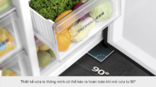 Tiện lợi cho việc cất giữ và lấy thực phẩm với cửa tủ mở rộng, cố định ở góc 90 độ