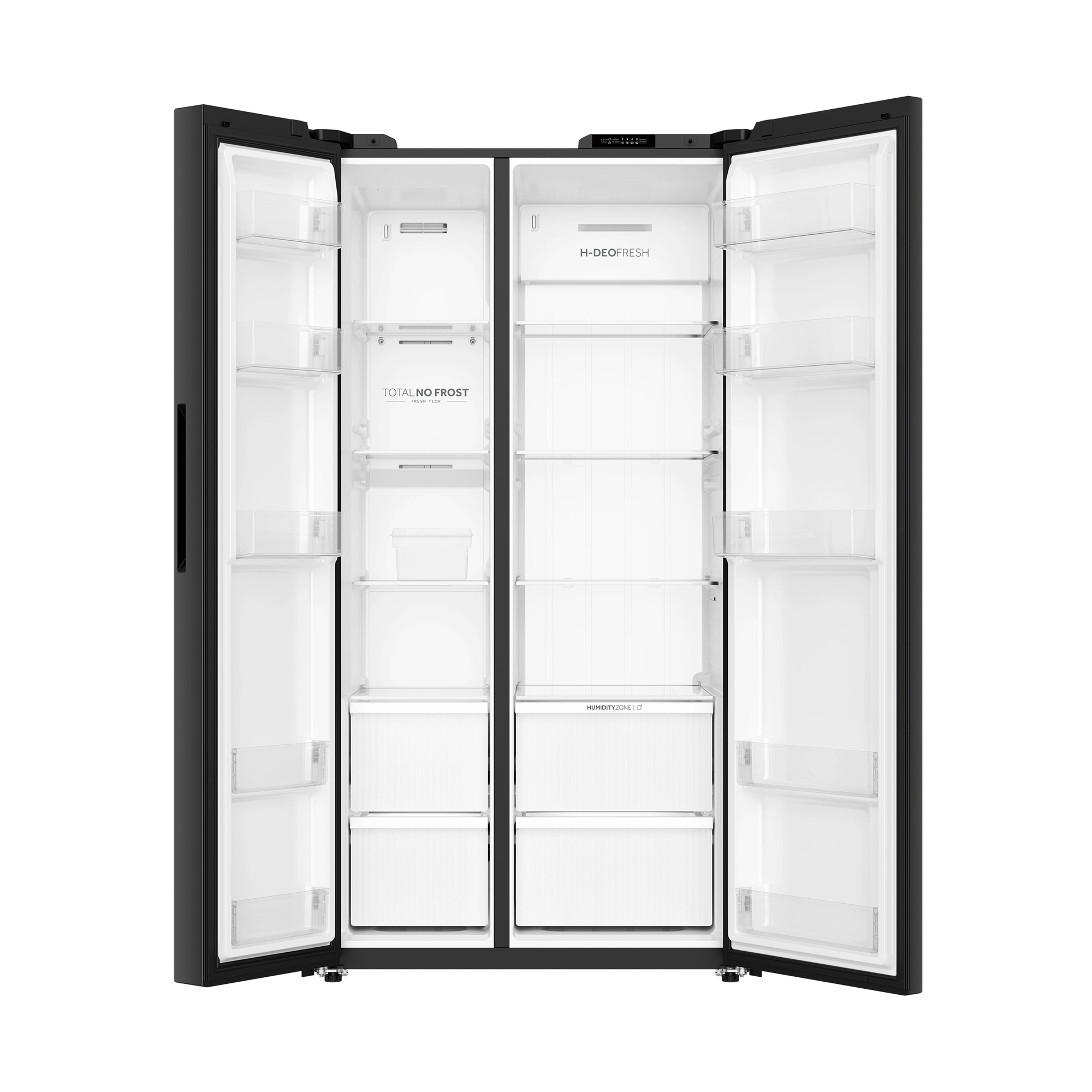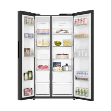 Tủ lạnh Aqua Inverter AQR-S633XA(SL) thuộc dòng tủ lạnh Side by Side với 2 cánh mở 2 bên cực kì tiện lợi, hai ngăn đông và ngăn mát được bố trí song song theo chiều dọc, bạn sẽ dễ dàng sắp xếp thực phẩm yêu thích trong tầm mắt, thuận tiện cho việc lấy ra mà không cần cúi xuống tìm kiếm. Khay kính linh hoạt có thể tùy chỉnh độ cao để phù hợp nhất với kích thước của thực phẩm lưu trữ, dễ dàng tháo lắp và vệ sinh. Ngoài ra, các ngăn kệ ở cánh tủ thiết kế nghiêng 95 độ, hạn chế tình trạng đổ ngã chai lọ.