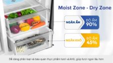 Hãng Aqua rất tâm lý khi trang bị cho sản phẩm này 2 ngăn chứa thực phẩm khô và ẩm riêng biệt giúp duy trì độ ẩm ổn định để rau củ và trái cây được bảo quản tươi ngon.