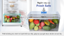 Tủ lạnh còn có ngăn rau củ Fresh Safe sẽ cung cấp nhiệt độ và độ ẩm ở trạng thái lý tưởng với rau củ nhờ thiết kế đóng kín, giúp khí lạnh không thổi trực tiếp lên thực phẩm. Nhờ vậy mà rau củ luôn tươi ngon và có độ ẩm.