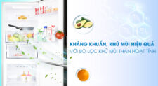 Bộ lọc khử mùi than hoạt tính có vai trò kháng khuẩn và khử bỏ mùi hôi, tanh, giữ cho không khí trong tủ lạnh luôn được thông thoáng và trong lành nhất để thực phẩm được an toàn và luôn tươi ngon như mới.