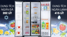 Tiện ích | Làm lạnh nhanh, Làm đá nhanh, Inverter tiết kiệm điện, Ngăn đá lớn, Làm đá tự động, Lấy nước bên ngoài, Chuông báo cửa mở, Lấy đá bên ngoài |