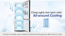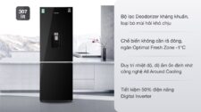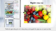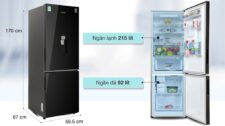 Tủ lạnh có dung tích ngăn lạnh 215 lít và ngăn đá 92 lít, phù hợp đựng thực phẩm cho gia đình từ 3 – 4 người.