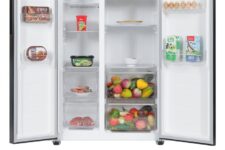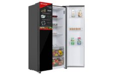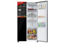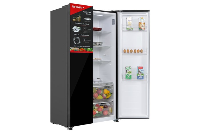 - Sharp Inverter 442 lít SJ-SBX440VG-BK được thiết kế theo mẫu tủ lạnh Side by Side với chất liệu cửa tủ kính cường lực màu đen. Điều này tạo nên vẻ đẹp sang trọng cho sản phẩm và có thể đặt ở bất kỳ vị trí nào trong không gian bếp hiện đại của gia đình.- Tủ lạnh Sharp đáp ứng tốt cho nhu cầu bảo quản thực phẩm của các hộ gia đình từ 4 - 5 người nhờ thiết kế dung tích sử dụng 442 lít.