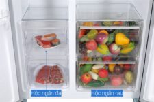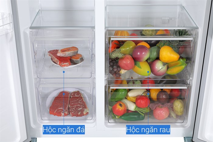 Ngăn lạnh được thiết kế với dung tích 291 lít, chia làm 4 ngăn và 2 ngăn đựng rau củ quả. Bên cánh cửa tủ còn được thiết kế thêm 3 khay chứa.Ngăn đá