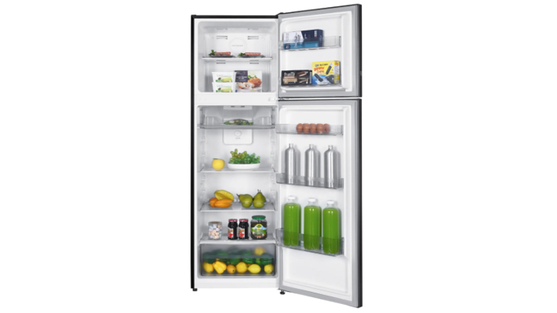 Với dung tích sử dụng 247 lít, tủ lạnh lý tưởng để bảo quản thực phẩm cho gia đình từ 2–3 thành viên, đáp ứng nhu cầu hàng ngày một cách tiện lợi:- Ngăn đá dung tích 52 lít, phù hợp để bảo quản thực phẩm đông lạnh và làm đá. Trang bị kệ khay đá chia ngăn thành hai phần tiện lợi, giúp sắp xếp thực phẩm khoa học, dễ lấy ra khi cần. Thiết kế này tối ưu không gian, đồng thời mang lại sự gọn gàng và tiện lợi trong quá trình sử dụng hàng ngày.- Ngăn lạnh dung tích 195 lít rộng rãi, lý tưởng để bảo quản thực phẩm hàng ngày. Tủ được trang bị các kệ kính cường lực bền chắc, chịu lực tốt và dễ vệ sinh. Thiết kế thông minh với nhiều ngăn linh hoạt giúp phân chia thực phẩm khoa học, tối ưu không gian sắp xếp, mang lại sự tiện lợi và gọn gàng cho người sử dụng.