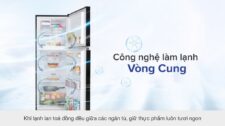 Công nghệ luồng khí lạnh vòng cung sẽ mang luồng khí lạnh đi khắp mọi ngóc ngách của tủ lạnh đảm bảo làm lạnh thực phẩm một cách đồng đều nhất, giúp bảo quản thực phẩm tốt hơn.