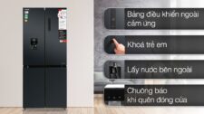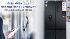 - Điều khiển từ xa qua ứng dụng TSmartLife: Chỉ cần cài đặt ứng dụng TSmartLife trên điện thoại, bạn có thể điều khiển nhiệt độ và các chế độ của tủ lạnh ở mọi lúc mọi nơi. Hơn nữa, công nghệ này còn giúp bạn sử dụng, chẩn đoán và khắc phục lỗi nhanh chóng cũng như liên hệ với nhân viên kỹ thuật để nhờ hỗ trợ sớm nhất khi cần thiết.- Bảng điều khiển được thiết kế dạng cảm ứng một chạm, nằm ở phía bên ngoài cánh cửa tủ lạnh, giúp người dùng quan sát dễ dàng và điều khiển các chức năng tủ lạnh để sử dụng.- Nhắc nhở thông minh: Báo hiệu bằng tiếng chuông để các thành viên trong gia đình ăn uống đúng giờ.- Chế độ vắng nhà: Gửi thông báo đối với trường hợp cửa tủ lạnh mở khi bạn vắng nhà thông qua ứng dụng TSmartLife.- Chuông báo khi quên đóng cửa: Tránh được tình trạng thất thoát hơi lạnh, đề phòng trẻ nghịch phá khi mở cửa tủ lạnh trong vòng 2 phút mà quên đóng lại. Chức năng này có thể được thông báo qua ứng dụng TSmartLife.
