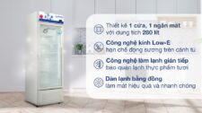 - Thiết kế: Thuộc dòng tủ mát nên sản phẩm được thiết kế với dạng đứng có 1 cánh cửa và 1 ngăn mát. Được thiết kế thon gọn với phần cửa bằng kính trong suốt có thể quan sát được thực phẩm đặt để bên trong nên phục vụ tối ưu cho nhu cầu buôn bán.- Chất liệu lòng tủ bằng nhựa, thân tủ bằng tôn sơn tĩnh điện hạn chế tình trạng trầy xước, độ bền cao và trơn đẹp.- Cửa tủ được làm bằng kính và có trang bị thêm công nghệ kính Low-E với 2 lớp cách nhiệt. Công nghệ này sẽ phân tán tốt nhiệt lượng chiếu vô và hạn chế được quá trình trao đổi nhiệt với môi trường bên ngoài, giúp tăng khả năng giữ lạnh và không bị đọng sương trên cánh cửa tủ không làm ảnh hưởng đến việc quan sát từ bên ngoài của người dùng.- Tủ mát Hòa Phát có dung tích 280 lít với nhiệt độ ngăn mát luôn dao động ở 0°C - 10°C.